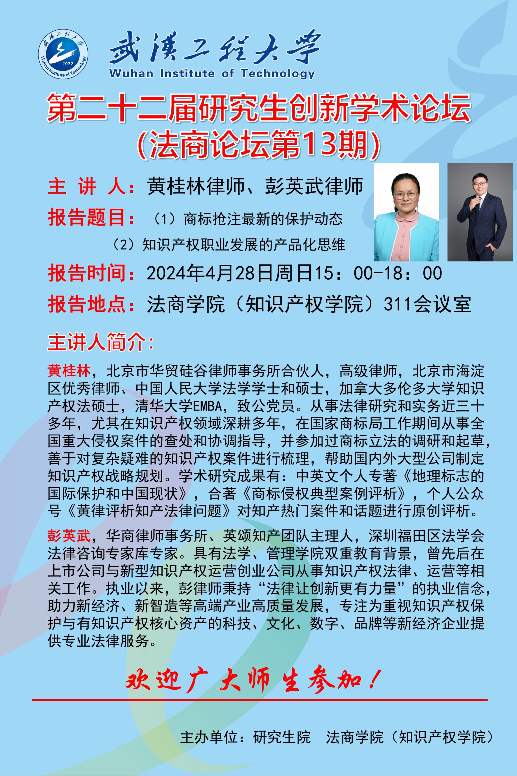 时间:2024年4月28日 周日15:00-18:00地点:suncitygroup太阳集团(知识产权学院)311会议室