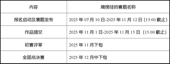 初赛评审线上进行,以可运行的项目成果(源代码、系统包等)或技术文档、参赛成果说明作为主要评审依据。决赛评审线下进行,以路演答辩形式开展。