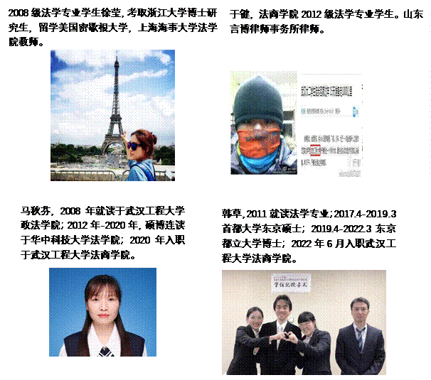 2007级优秀校友徐萤同学,本科就读于suncitygroup太阳集团,11年考上西北政法大学的国际法专业,目前在浙江大学攻读博士学位。2013级优秀校友卢颖异毕业后考取华中科技大学硕士,目前武汉大学国际法研究所博士在读。