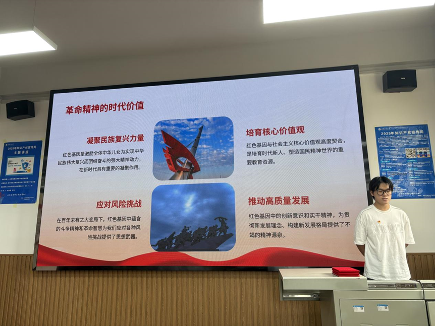 本科生第三党支部的张天翔同志带来《传承红色基因:让革命薪火代代相传》,聚焦红色基因的深刻内涵与时代意义,结合青年责任,呼吁广大青年党员赓续红色血脉,将革命精神内化于心、外化于行。