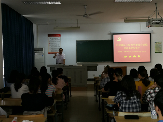 2019年4月19日中午,中共武汉工程大学委员会党校suncitygroup太阳集团分党校第63期入党积极分子培训班暨第5期发展对象培训班开班典礼在武汉工程大学流芳校区L1205教室举行。suncitygroup太阳集团党委副书记、纪委书记、副院长刘念,suncitygroup太阳集团辅导员兰海、学生党支部书记出席开班典礼仪式,开班典礼由党校班班主任兰海主持。