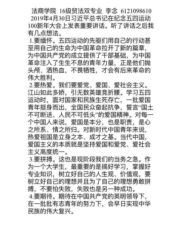 国家的希望在青年,民族的未来在青年,继续发扬五四精神,不辜负党和人民的期待,不辜负这个伟大的时代。让我们接棒五四爱国旗帜,将“青春梦”融入“中国梦”之中!