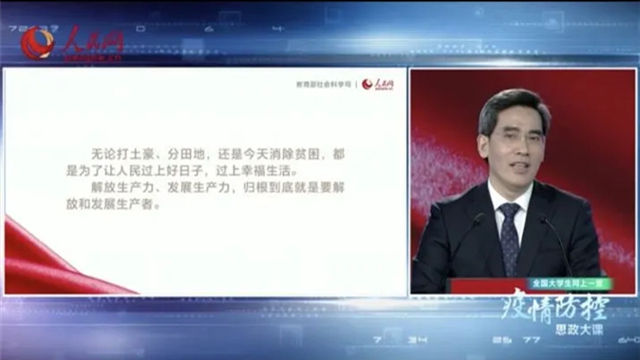 金艳艳:在这堂“思政大课”中,四位老师结合书本内容向我们解读了党中央关于疫情的决策部署,分析了社会主义显著优势,讲述了战“疫”一线的感人故事,深入浅出,这令我备受鼓舞和激励。疫情当头,我们一定要紧跟党的领导,坚定必胜信念,携手共进,因为我们相信“风雨压不垮,苦难中开花”。