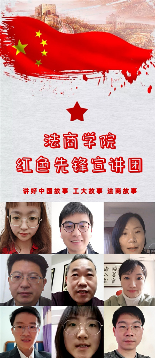 suncitygroup太阳集团“红色先锋宣讲团”经过近一个月的筹备时间现已正式“上线”,宣讲团由学院领导班子、教师和学生党员代表、学生干部和具有创新精神的学生组成,设立“红色先锋宣讲团”社会奖助金。通过开展党的十九届四中全会精神宣讲、时事政策宣讲、普法宣讲,开展学业帮扶、红色寻访、实践调研、志愿服务等活动,着力讲好中国故事、工大故事、法商故事,大力弘扬新时代爱国主义精神、生动彰显中国特色社会主义制度优势、持续奏响社会主义核心价值主旋律,全面提升学生科学素养和人文情怀、不断坚定师生爱国力行的使命责任。